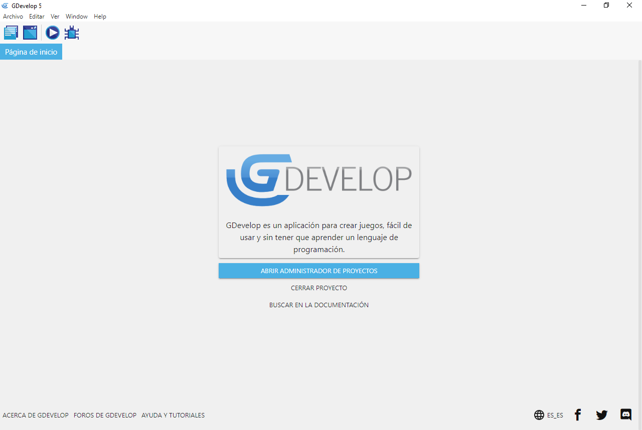 Siempre descargue GDevelop desde esta página para asegurarse de tener la última versión. Instalar (o extraer) GDevelop y lanzarlo.
