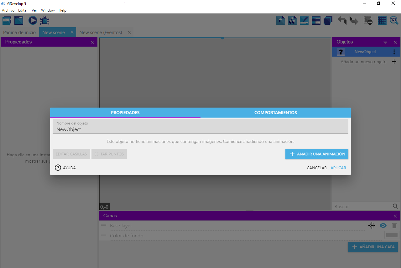 Por ahora, el objeto no tiene animaciones, las añadiremos más tarde.