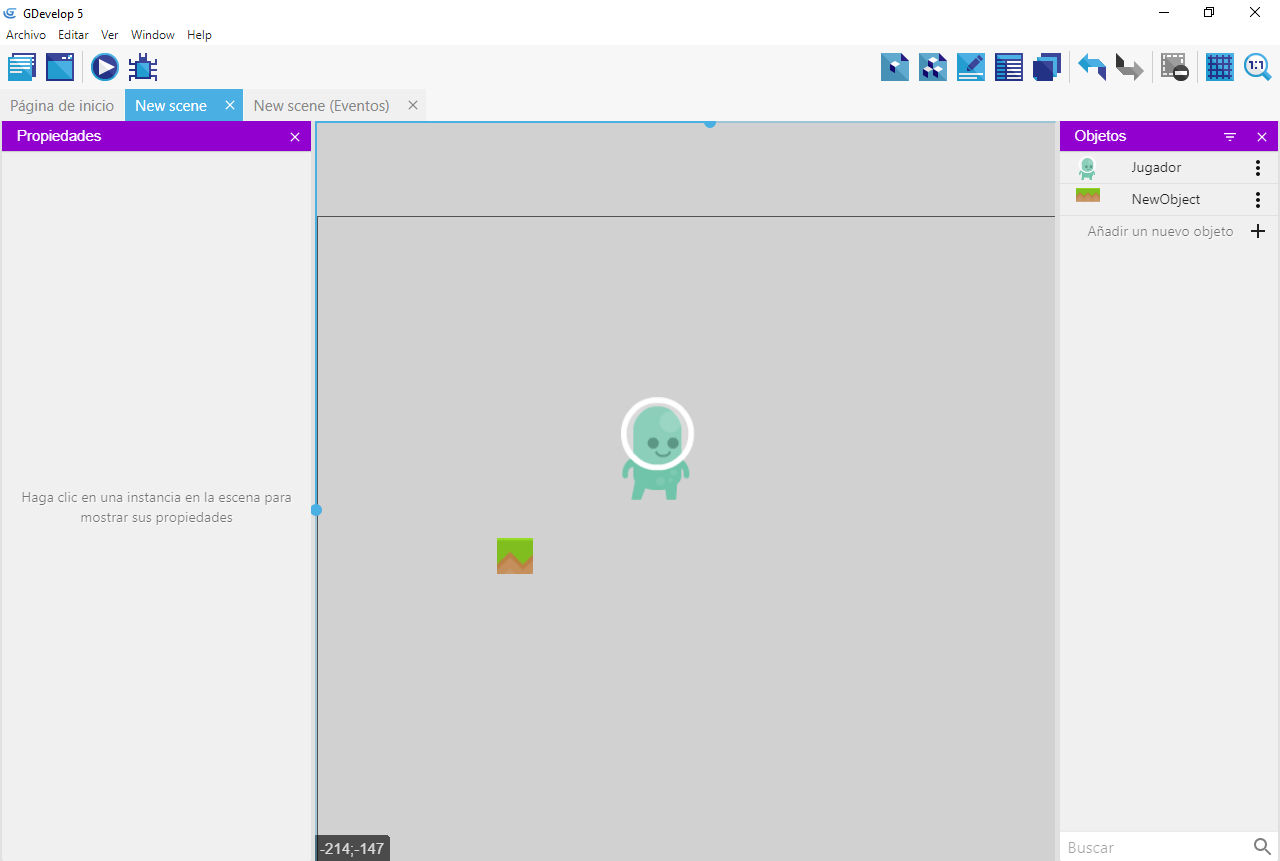 El jugador controlará un personaje que puede saltar y moverse en plataformas. Vamos a crear este objeto.