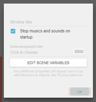 新しいシーンの開始時には、デフォルトで音楽とサウンドが停止します。途切れずに再生を続けたい場合は、シーンのプロパティを開き(シーンエディターでシーンを右クリック)、次のチェックボックスのチェックを外してください。